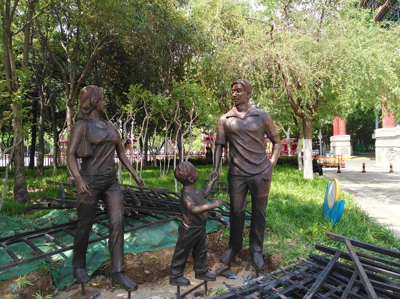 煙臺(tái)昌林雕塑承制濟(jì)南市《英雄山廣場(chǎng) 》 鑄銅雕塑,雕塑以一家三口為主體,表現(xiàn)了親情和其樂(lè)融融的家庭氛圍,是近年景觀雕塑常見(jiàn)題材,很好的和觀者互動(dòng),能引起觀者共鳴,有較深的影響力和親和力。