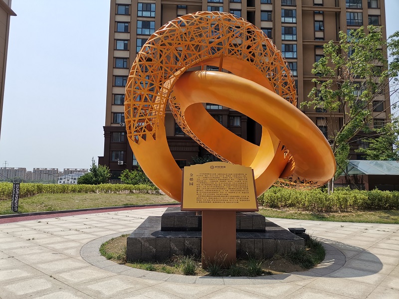 304不銹鋼制作,雕塑高3.9米,寬5米。雕塑位于小區(qū)金婚園景區(qū),寓意金婚紀(jì)念。昌林雕塑2019年11月制作安裝。