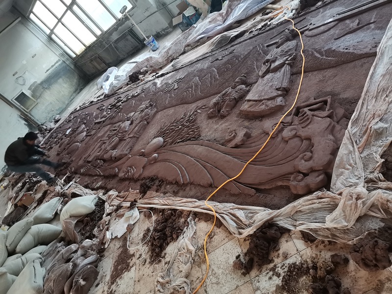 煙臺(tái)崆峒島社區(qū)展覽館 玻璃鋼雕塑浮雕 仿銅《家風(fēng)》 長(zhǎng)13米,高2.6米。2020-1月 昌林雕塑制作安裝