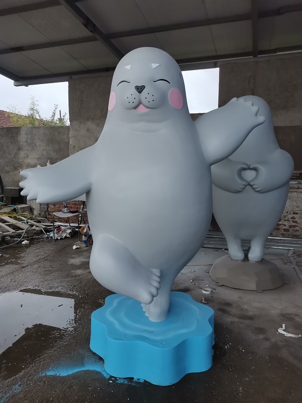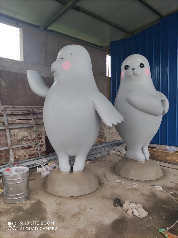 煙臺玻璃鋼雕塑 蓬萊長島形象大使斑海豹一組 2021年制作 高1.8米