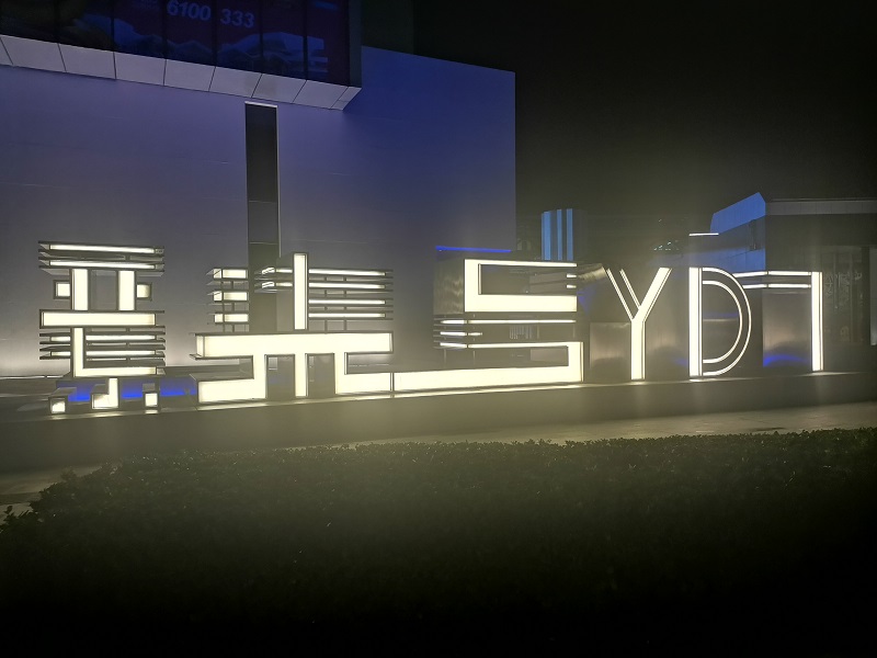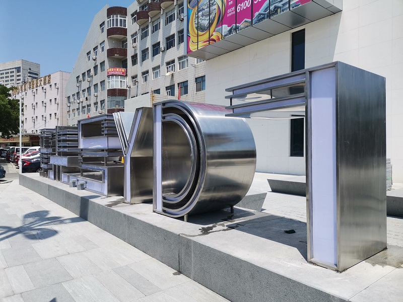 煙臺亞東柒 號文創(chuàng)園 大型316不銹鋼(3mm厚)字體發(fā)光標(biāo)志景觀 高1.8米 高難度加工煙臺唯 一制作廠家 昌林雕塑景觀