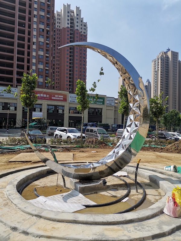 煙臺不銹鋼雕塑 煙臺山水龍城 商業(yè)街 304鏡面不銹鋼雕塑 昌林雕塑2022年制作安裝