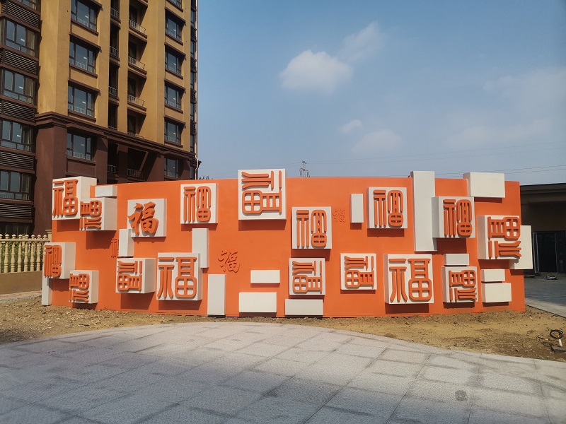 煙 煙臺蓬萊 不銹鋼萬福墻雕塑 長12米 高3米 煙臺昌林雕塑2022制作安裝