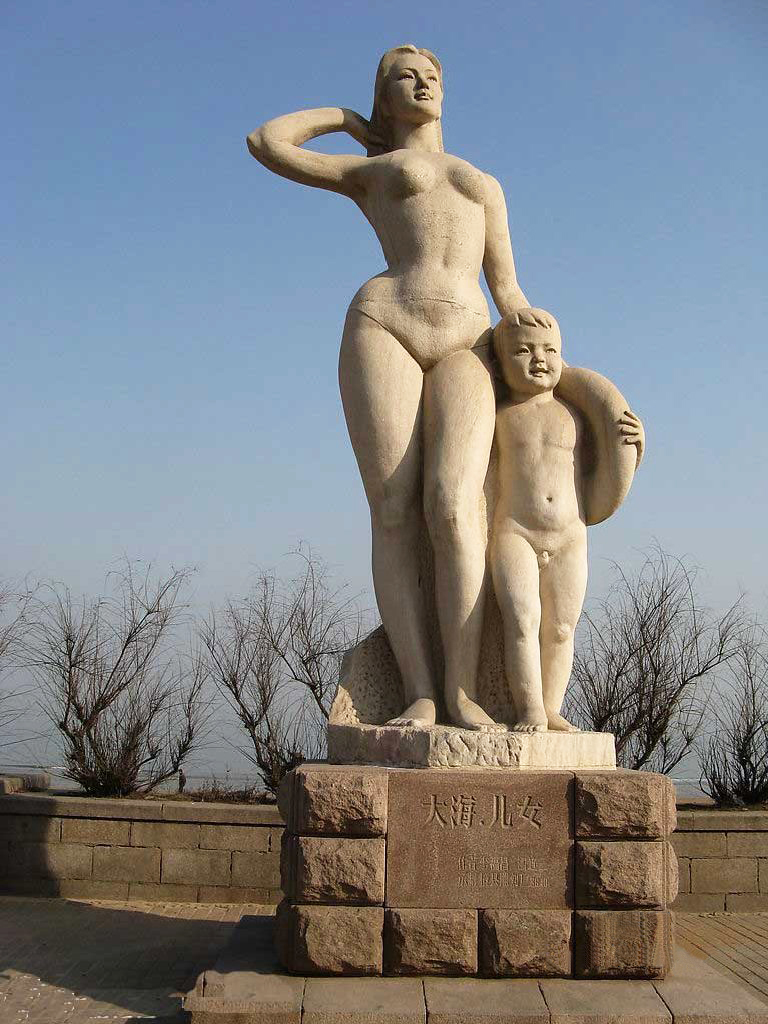 煙臺 【大海兒女】位于煙臺市第一海水浴場,雕塑高4.3米,材質(zhì)(大理石)