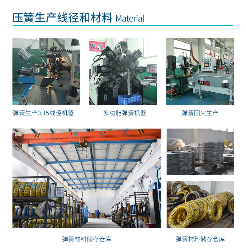 公司生產(chǎn)的彈簧分類有壓縮彈簧(普通壓縮彈簧,中凹壓縮彈簧,中凸壓縮彈簧,塔型壓縮彈簧,漸近壓縮彈簧,左旋壓縮彈簧,右旋壓縮彈簧)、扭轉(zhuǎn)彈簧(普通扭轉(zhuǎn)彈簧,雙扭轉(zhuǎn)彈簧,異形扭轉(zhuǎn)彈簧,左旋扭轉(zhuǎn)彈簧,右旋扭轉(zhuǎn)彈簧)、拉伸彈簧(普通拉伸彈簧,單鉤拉伸彈簧,雙鉤拉伸彈簧,掛鉤拉伸彈簧,拉環(huán)拉伸彈簧,非密圈拉伸彈簧,左旋拉伸彈簧,右旋拉伸彈簧)、異形彈簧、渦卷彈簧、卡簧擋圈、波形彈簧、碟形彈簧、沖壓件等彈性元件。